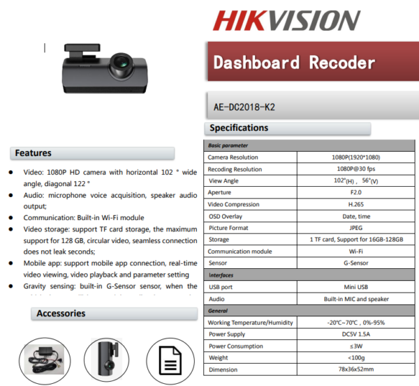 Cámara Móvil (Dash Cam) para Vehículos / ADAS / Micrófono y Bocina Integrado / Wi-Fi / Micro SD / Conector USB / G – Sensor / Soporta GPS